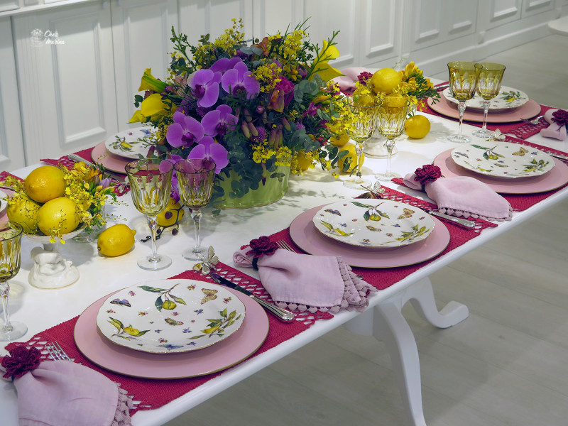 Das antigas e imponentes fazendas de Minas Gerais, com suas mesas fartas que tinham detalhe por detalhe caprichosamente escolhidos pelas baronesas, que se dedicavam a manter a casa aconchegante, vem a inspiração de Tânia para desenhar esta louça de porcelana com borboletas, abelhas e limões.