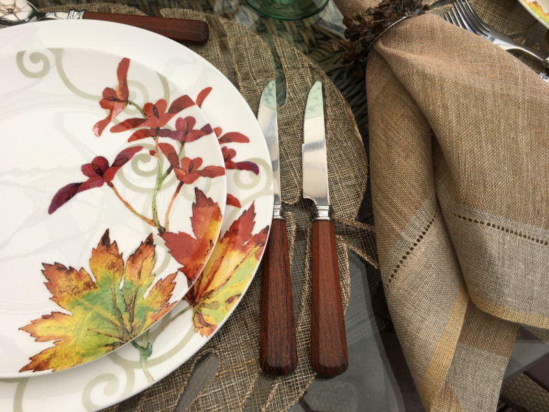 A louça que escolhi para a mesa do almoço é tipicamente jordanense porque tem o design em plátanos, folha típica da vegetação de Campos de Jordão.